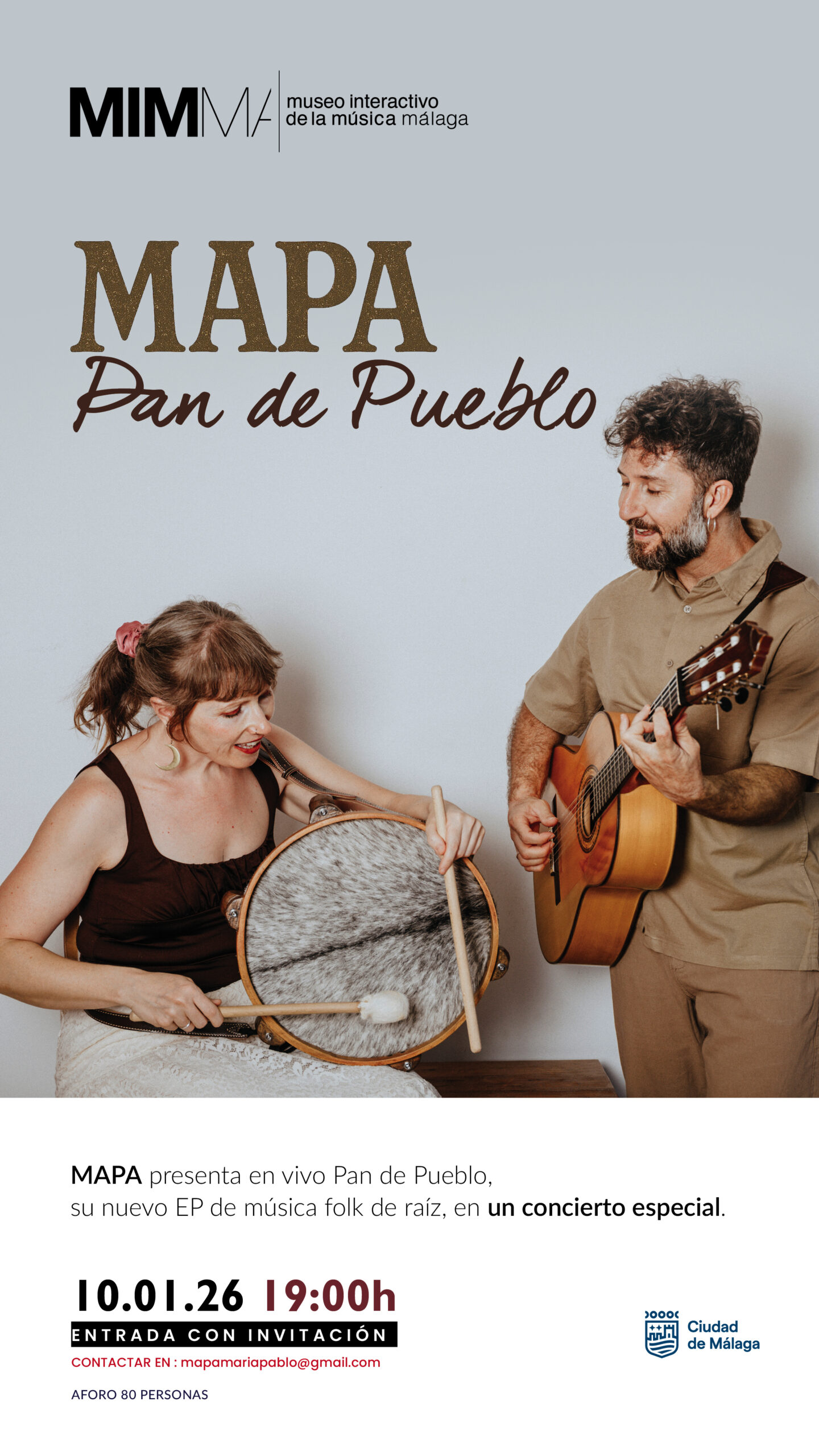 MAPA presenta en vivo Pan de Pueblo, su nuevo EP de música folk de raíz, en un concierto especial el próximo 10 de enero en el MIMMA de Málaga. Una experiencia sonora ampliada con la fuerza del directo y una formación excepcional: Manu Clavijo al violín y El Manin a las percusiones. Un encuentro íntimo y lleno de matices donde la música artesanal toma el centro.